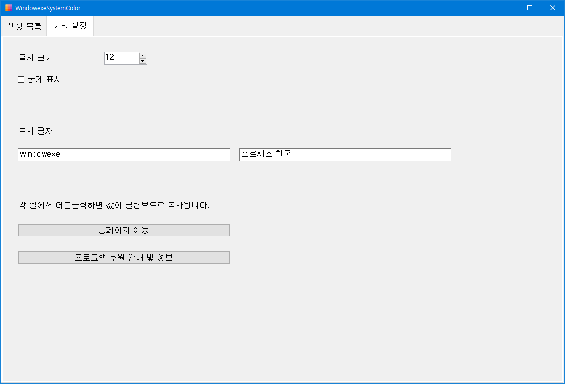 파일명은 변경하지 마세요. WindowexeSystemColor 가 아니면 실행이 되지 않습니다.