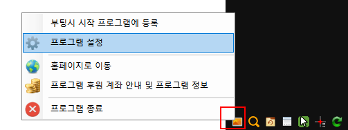 작업표시줄 오른쪽 시스템 트레이에 네모난 사진같은 아이콘이 생깁니다. 우클릭후 설정 클릭.