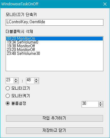 프로그램 원래 이름은 WindowexeMonitorOnOff 였는데 기능이 추가되어서 WindowexeTaskOnOff 로 변경하였습니다.