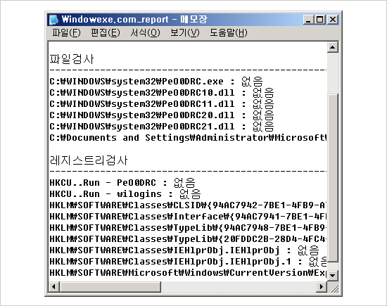 파일 및 레지스트리를 검사하여 결과를 출력합니다.