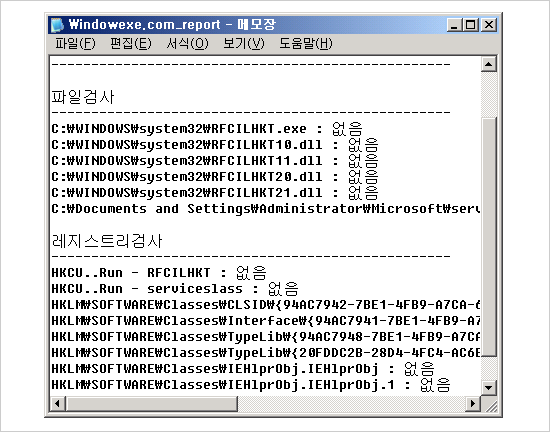 C:\Documents and Settings\Administrator\Microsoft\serviceslass.dll : 없음