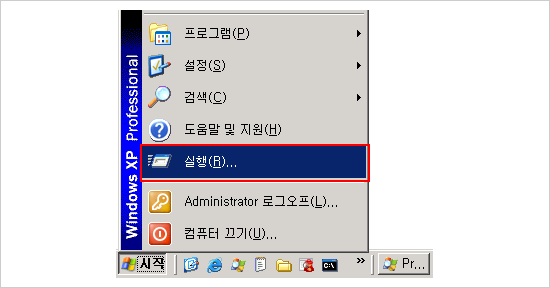 시작메뉴에서 실행을 선택합니다.