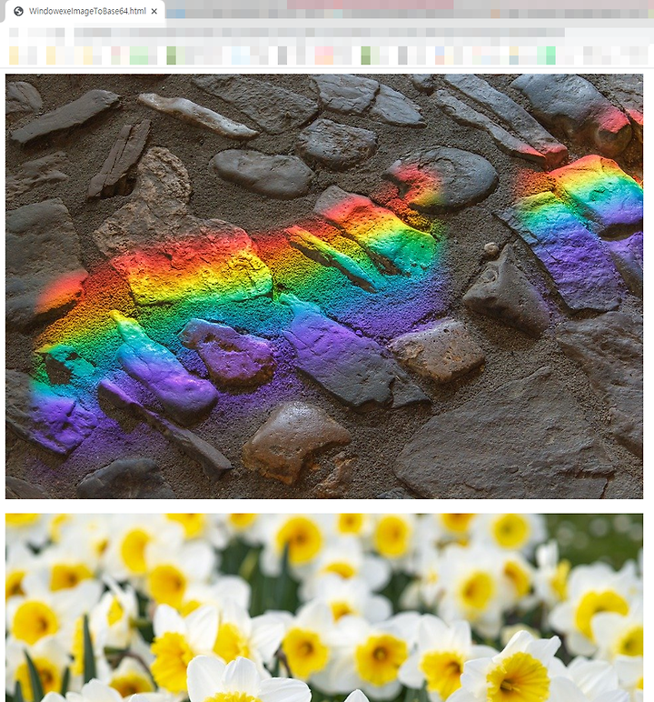 이미지 파일이 Base64코드로 변환되고 WindowexeImageToBase64.html 파일이 실행된 화면입니다.