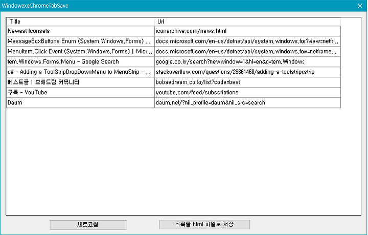 크롬의 열린탭 목록을 html 파일로 저장하는 프로그램입니다.
