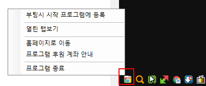 프로그램을 실행하면 시스템 트레이에 크롬비슷한 아이콘이 생깁니다.