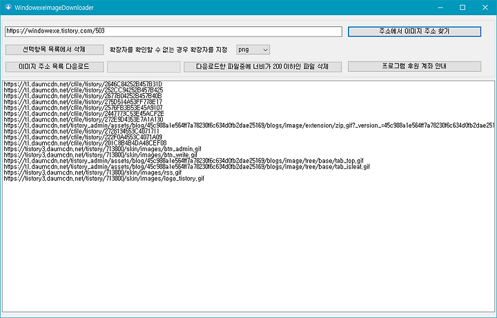 이미지 주소 목록 다운로드를 클릭하면 목록에 있는 이미지를 모두 다운로드합니다.