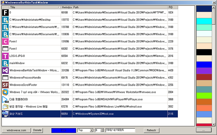이 프로그램은 막대기에 마우스가 올라가면 지정한 윈도우가 바로 활성화됩니다. 이 윈도우에서 볼일을 다보고 마우스를 윈도우 밖으로 빼면 윈도우가 없어지고 바로 이전의 윈도우가 다시 활성화됩니다. (화상키보드는 제외)