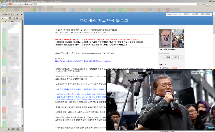 즐겨찾기에 넣어 두거나 작업표시줄에 고정해 두었다가 동영상을 팝업시키고 싶을때 클릭만 하면 됩니다.