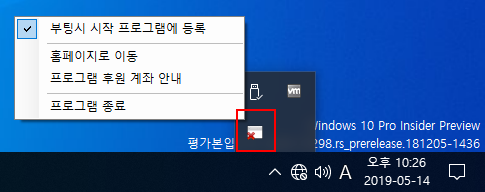 시스템 트레이 마우스 우클릭 후 시작프로그램에 등록을 클릭하세요. 클릭할 때마다 해제 <-> 활성화 됩니다.