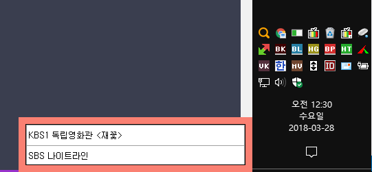 방송 시간과 현재시간이 일치하는 프로그램이 있는 경우 작업표시줄 우측하단에 현재 방송중인 프로그램이 자동으로 표시됩니다.