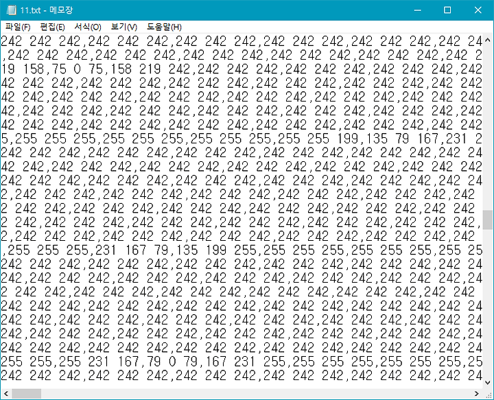 이미지 너비 * 이미지 높이 만큼 R G B, 값이 순서대로 표시됩니다.